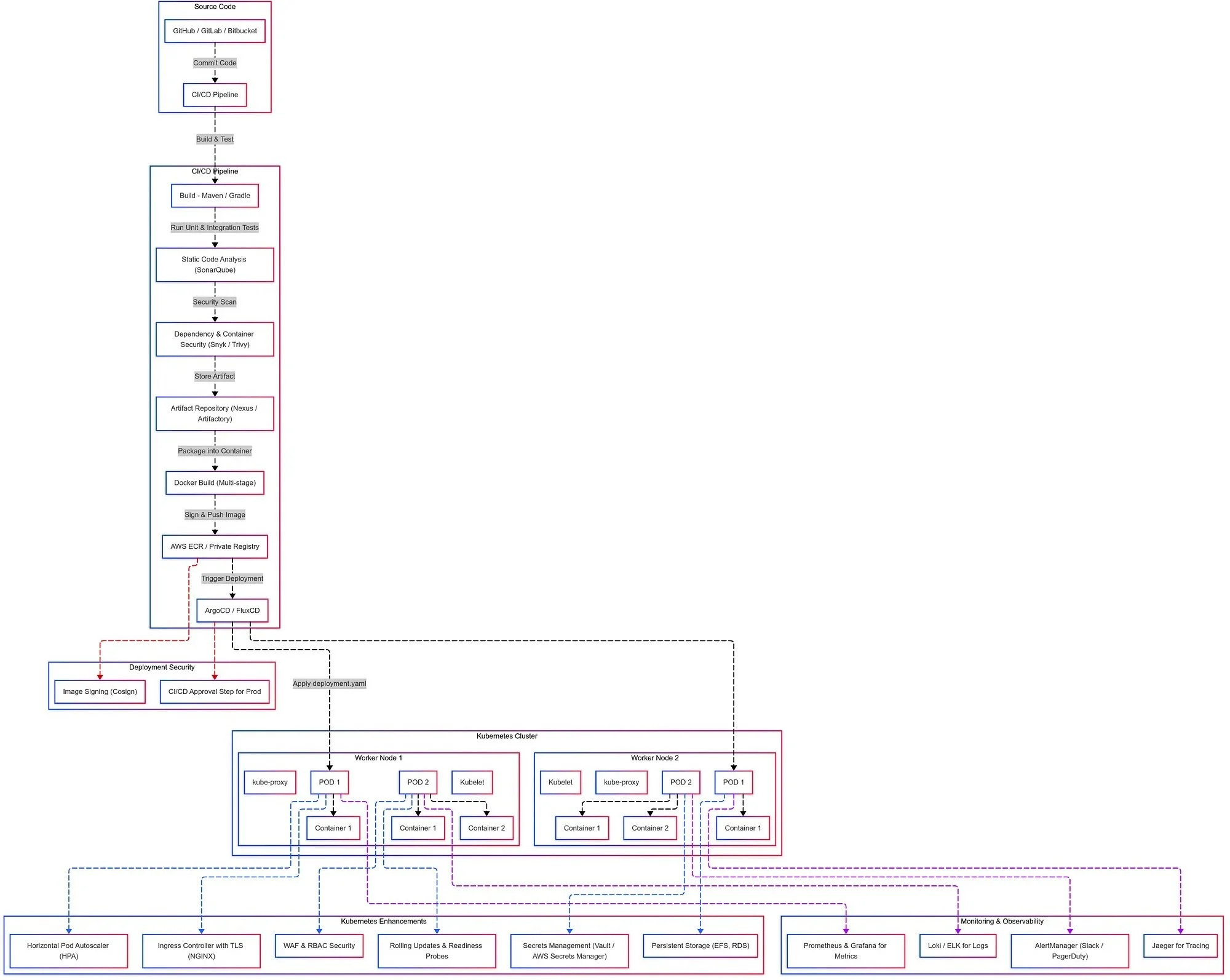 💡 Key takeaway: Security is not an afterthought — it should be baked into every layer, from code to deployment, to ensure the system is protected against threats at all times.