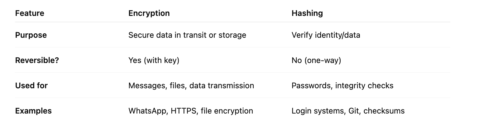 Hashing is like turning your password into a smoothie — you can see what came out, but you can’t get back the original fruits.